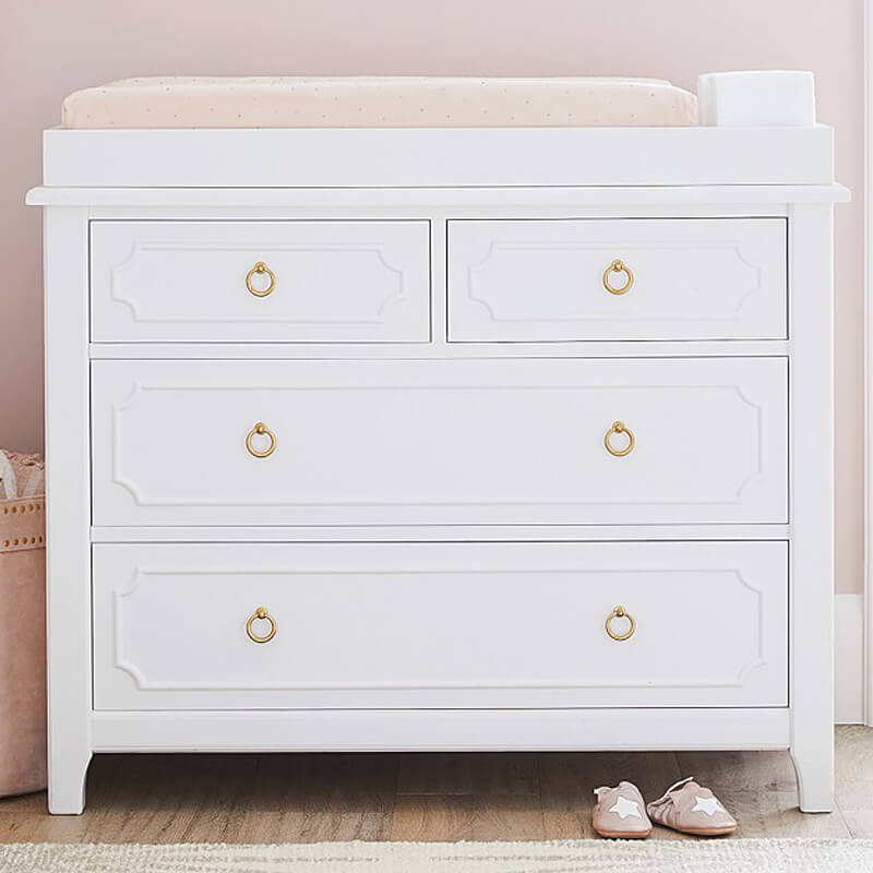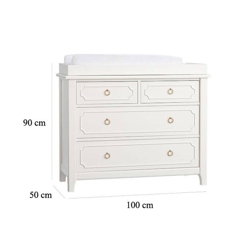 Tafel ini terbuat dari bahan baku kayu mahoni oven pilihan berkonsep minimalis simpel model terbaru tahun 2021 dengan lapisan finishing cat duco putih. Memiliki 4 laci penyimpanan untuk tempat popok, buaju ganti, dll.
