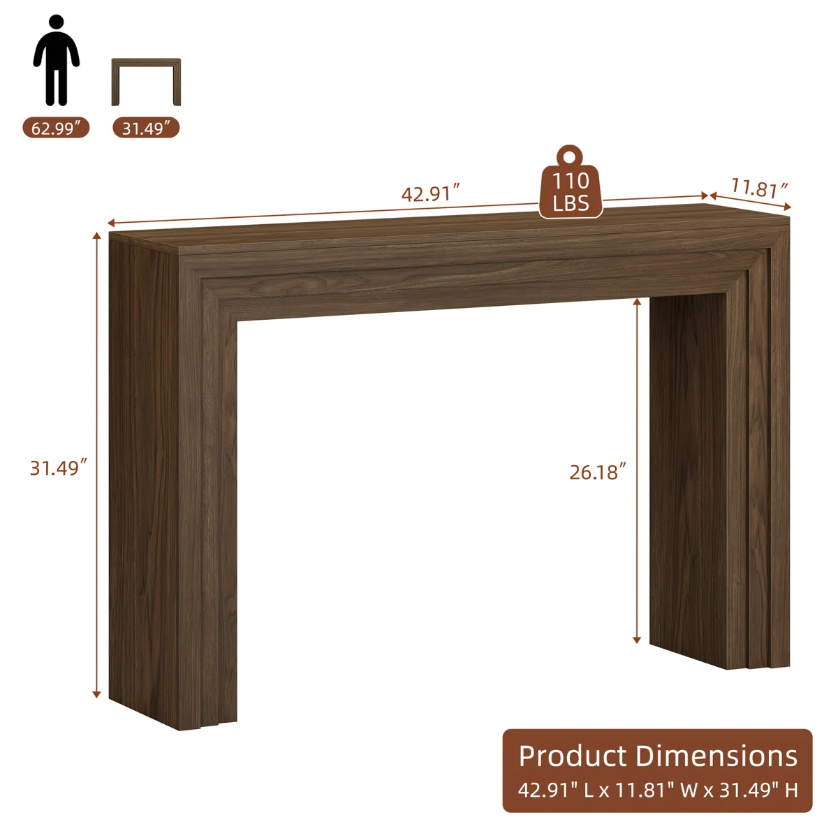 - Meja Konsol : P 109 cm x L 30 cm x T 80 cm