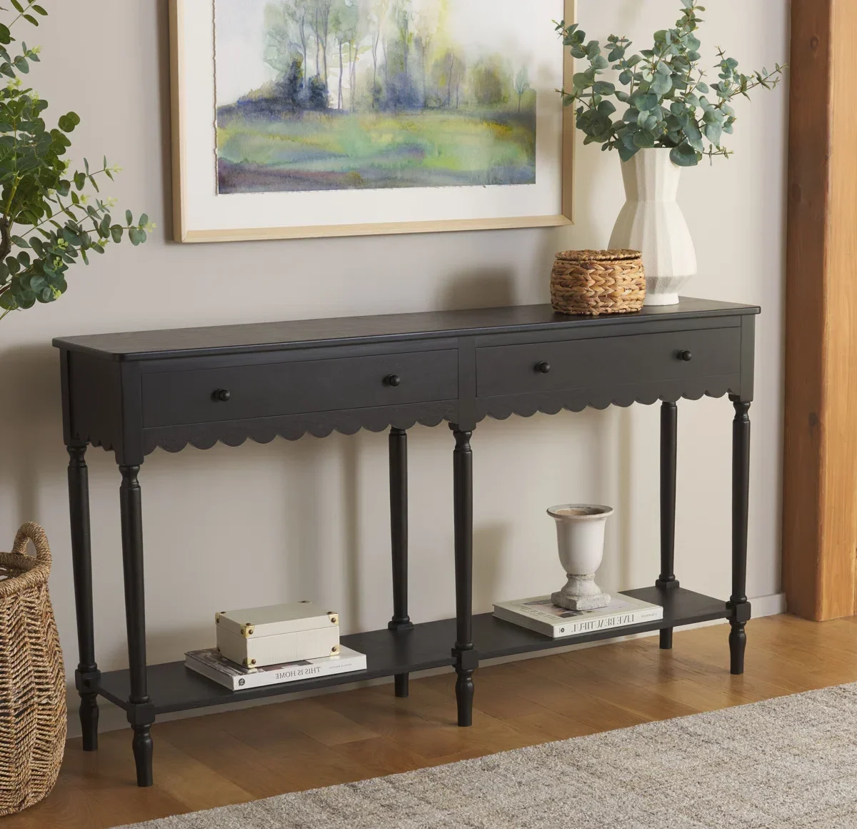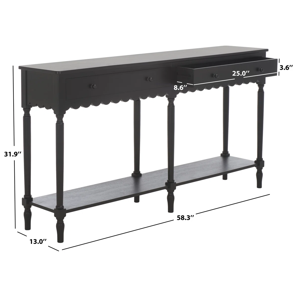 BRANDEN Meja Konsol Laci Cat Hitam Hitam Minimalis