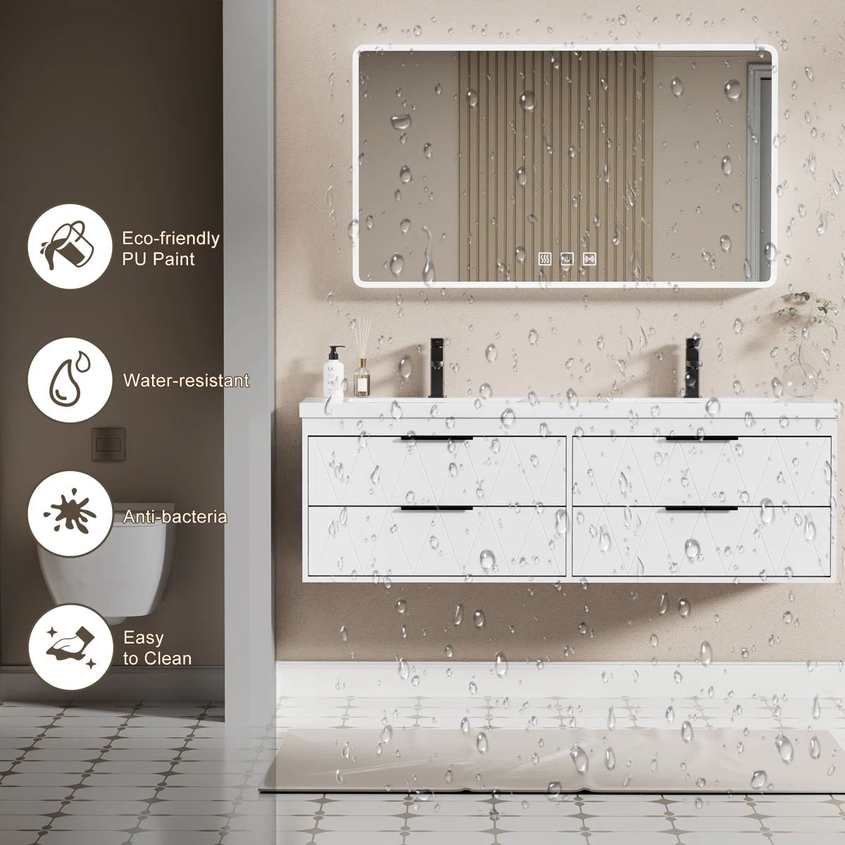 Hadirkan pesona kemewahan dalam ruang kamar mandi dan salah satu tempat cuci tangan ataupun membasuh muka Anda yaitu dengan produk ini sangat cocok untuk menjadi salah satu pilihan bagi Anda. Karena desain dari produk Wastafel Cabinet ini sangat elegant dengan mengusung tema minimalis bergaya modern yang sangat modis dan kekinian. Serta memiliki visual yang menawan berkat lapisan warna tacosheet premium yang sangat elegant. Dan pastinya, bahan baku utama dari produk Wastafel ini diolah dengan menggunakan plywood premium sehingga terjamin akan mutu, awet dan kualitasnnya.