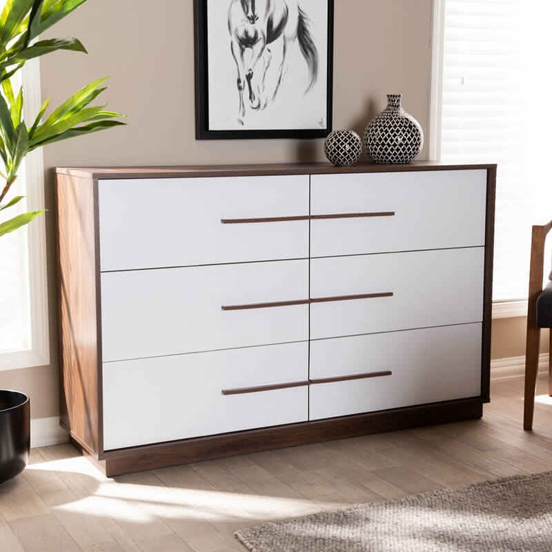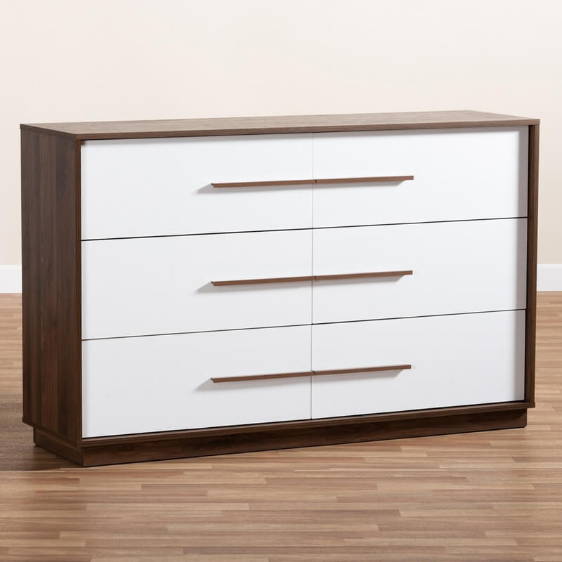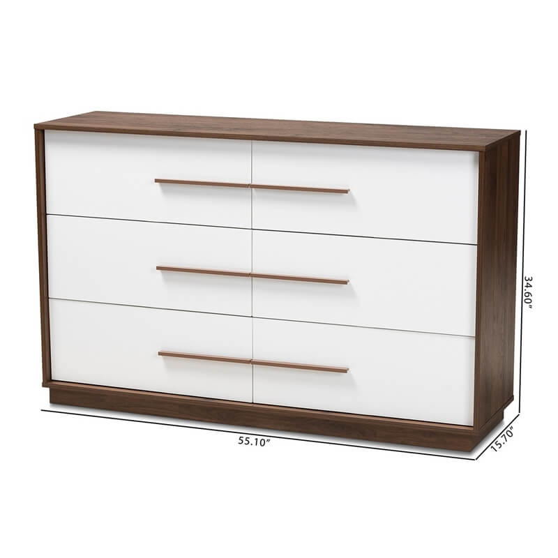 Diolah menggunakan bahan kayu jati pilihan kualitas terbaik, namun pada bagian daun pintu laci menggunakan kayu mahoni oven. Desain yang diterapkan pada dresser ini mengusung tema minimalis sederhana model terbaru yang memiliki 6 laci besar. Sehingga akan dapat menampung banyak benda-benda yang ingin anda simpan atau pakain juga bisa disimpan disini. Tentunya tampilannya juga sangat modis sekali dengan perpaduan warna antara walnut brown dan white / putih. Sehingga sangat tepat untuk menjadi pelengkap furniture di kamar impian anda.