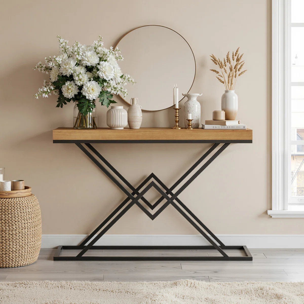 ANKA Meja Konsol Rangka Besi Kombinasi Kayu Jati