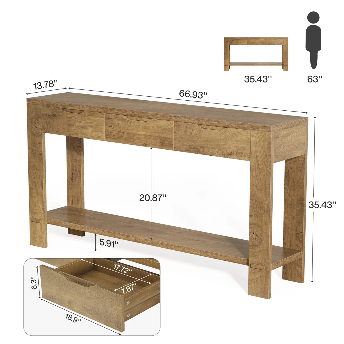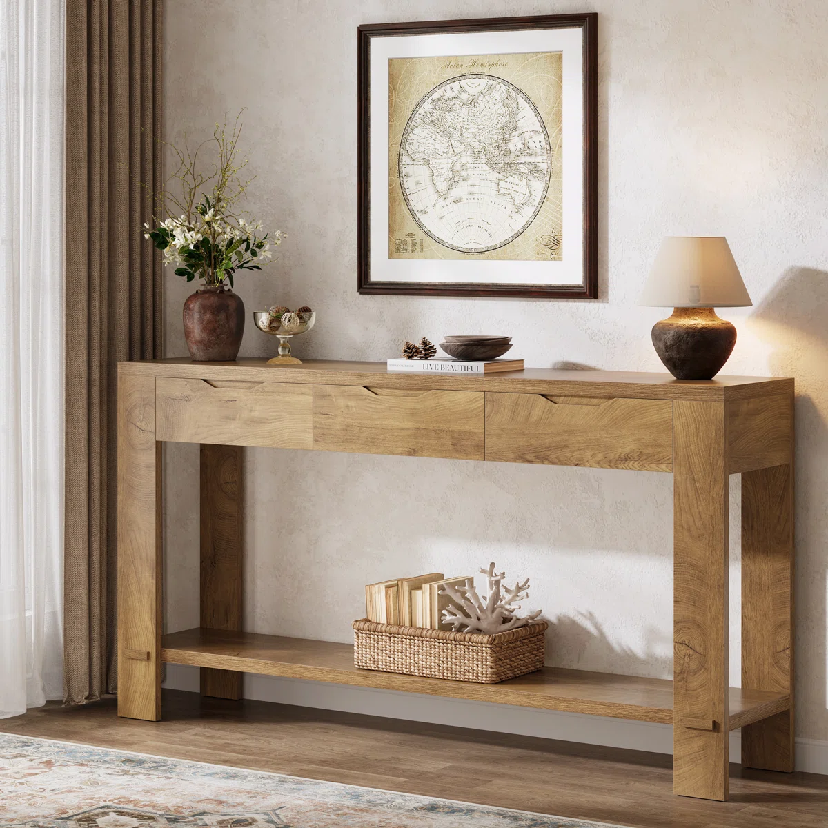 GALLEN Meja Konsol Laci Minimalis Modern Kayu Jati