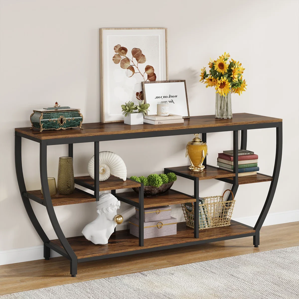 ANKA Meja Konsol Rangka Besi Kombinasi Kayu Jati