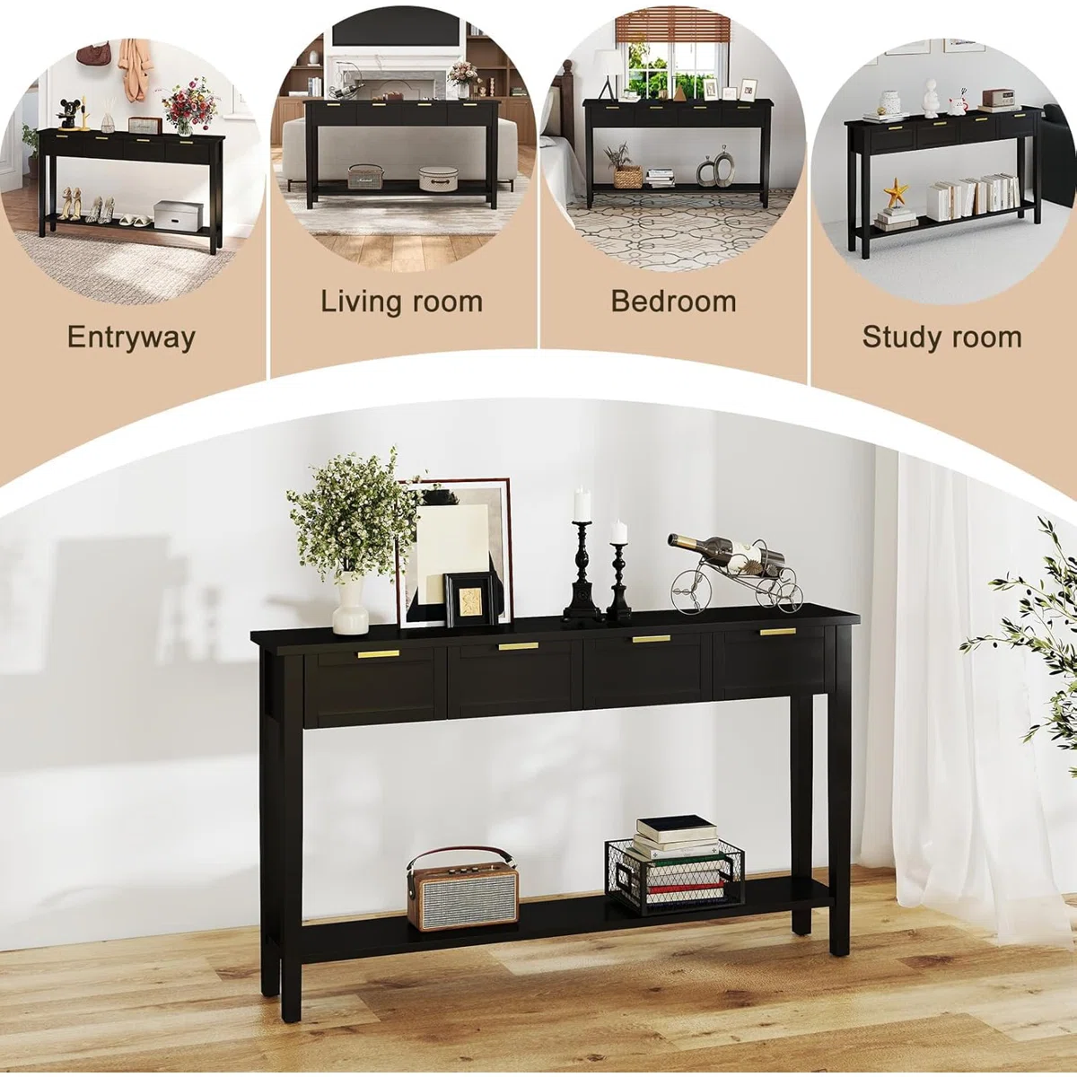 JANA Meja Konsol Laci Cat Duco Hitam Minimalis