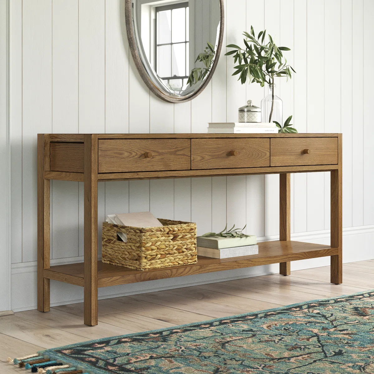 KENAN Meja Konsol Laci Kayu Jati Solid Minimalis