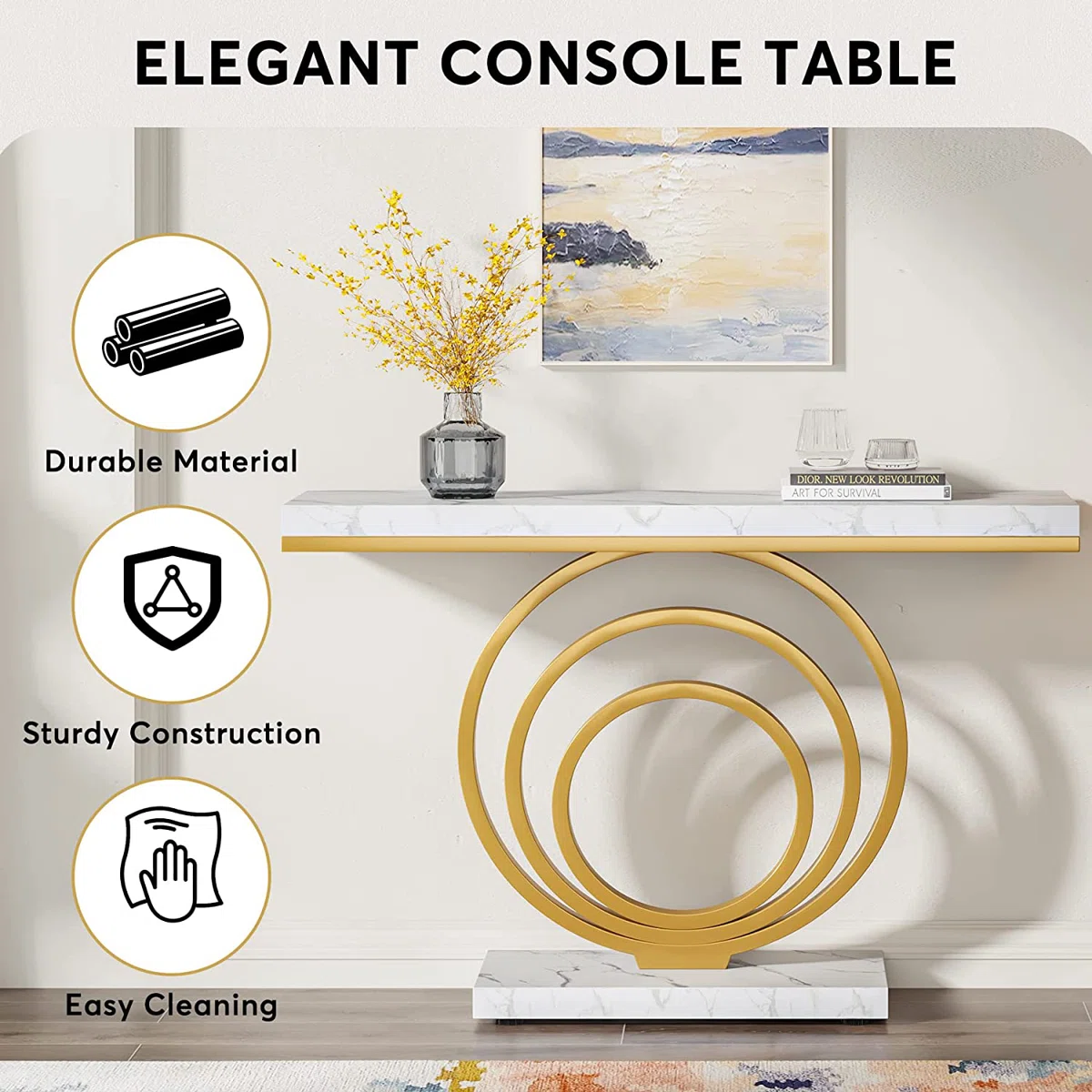 ALONA Meja Konsol Besi Top Marmer Minimalis