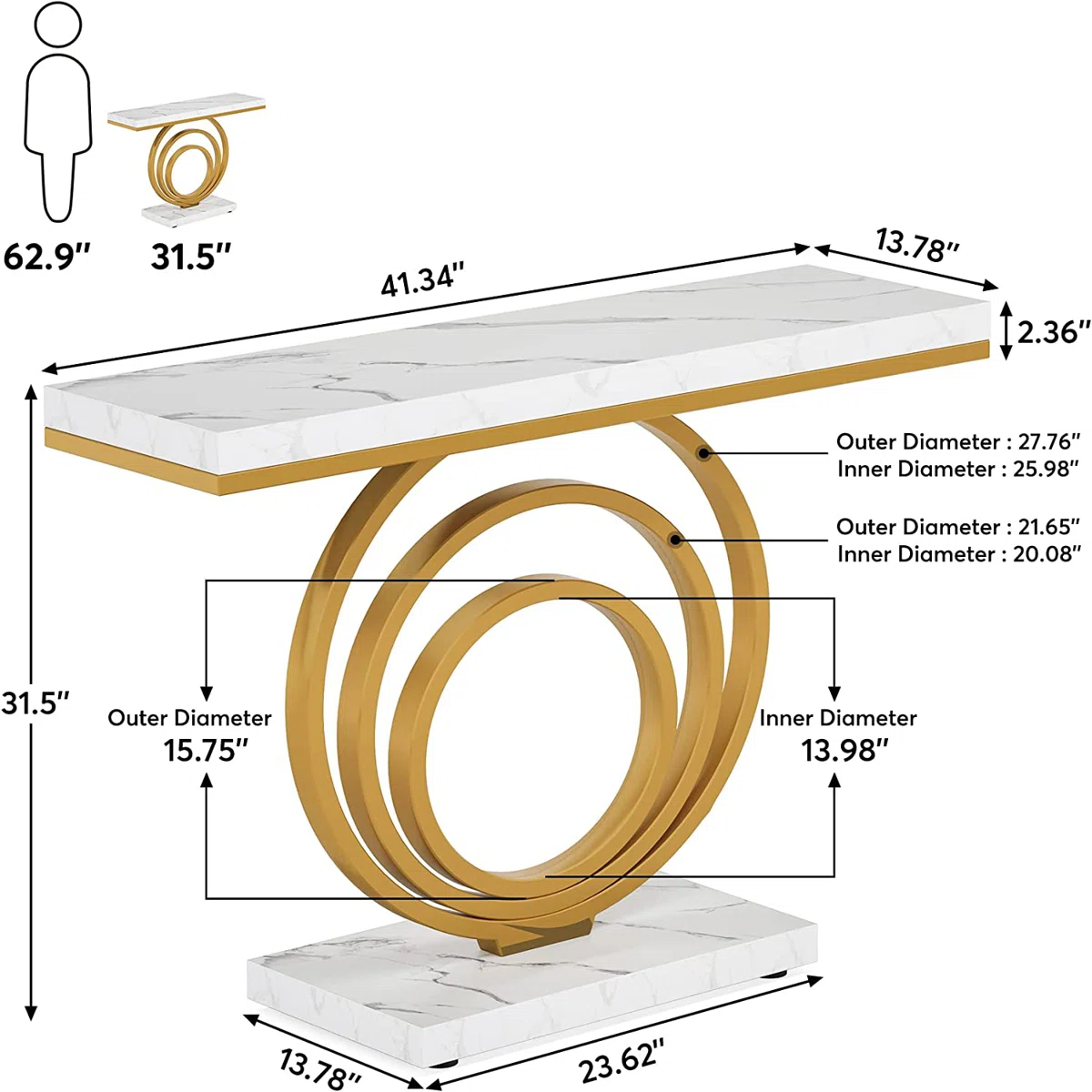 - Meja Konsol : P 105 cm x L 35 cm x T 80 cm