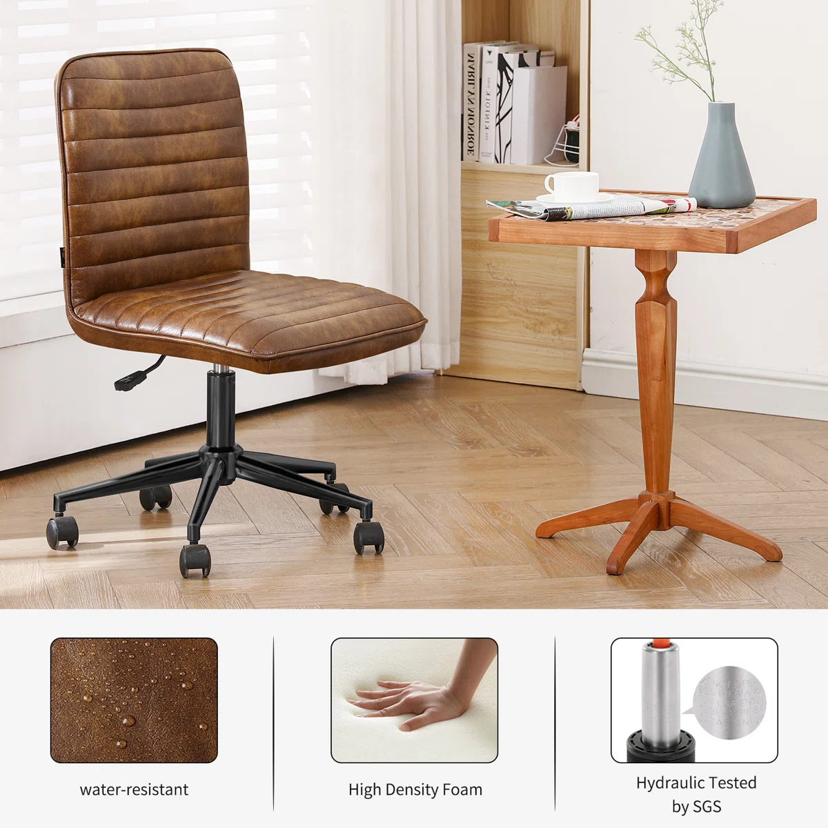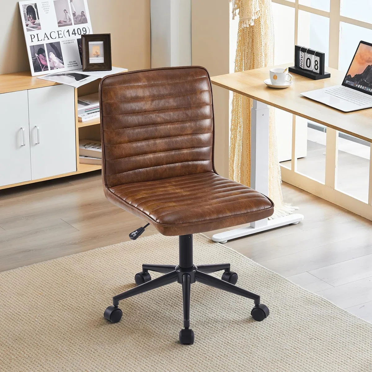 Kursi kantor berbalut sofa yang akan memberikan Anda kenyamanan saat bekerja. Dilengkapi roda kecil pada kakinya bisa membuat Anda leluasa bergerak maupun berpindah tempat, ada juga tuas dibawah yang bisa mengatur ketinggian sesuai postur tubuh Anda.