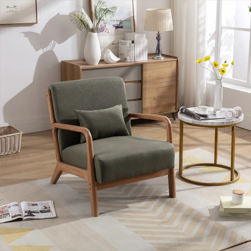 Kursi berlengan ini menghadirkan estetika kasual ala pesisir ke kamar tidur atau ruang tamu Anda. Kursi ini memiliki rangka kayu kering oven dengan finishing cokelat, dan bertumpu pada kaki yang melebar untuk tampilan modern pertengahan abad. Bantalan berisi busa menawarkan bantalan ekstra saat Anda membaca atau bersantai, dan sandaran bantal serta lengan persegi memberikan banyak dukungan. Yang terbaik dari semuanya, kursi ini dilengkapi dengan satu bantal hias untuk tampilan yang langsung tertata.