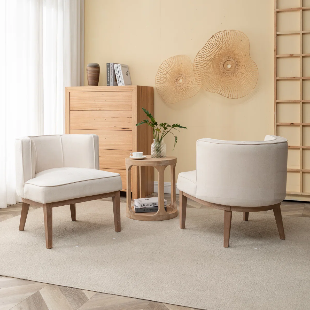 Dapatkan keindahan dan kenyamanan sekaligus. Bahan kainnya adalah linen, yang terasa lembut, sangat nyaman, dan tahan lama. Kaki dan rangka sofa terbuat dari kayu solid, yang sangat kuat. Bagian bawah kaki kayu solid dilengkapi dengan bantalan anti selip, sehingga tidak akan meninggalkan bekas di lantai kayu.