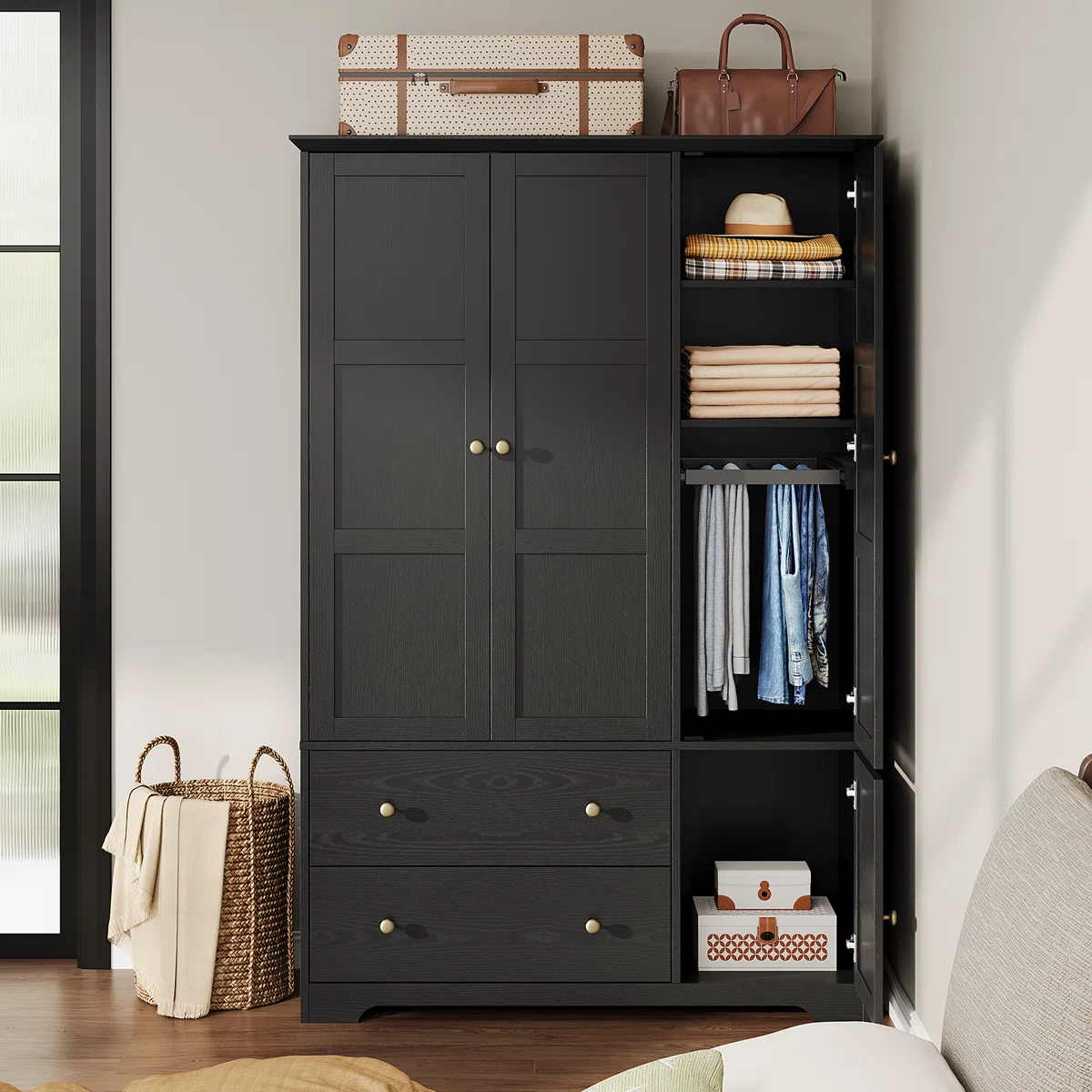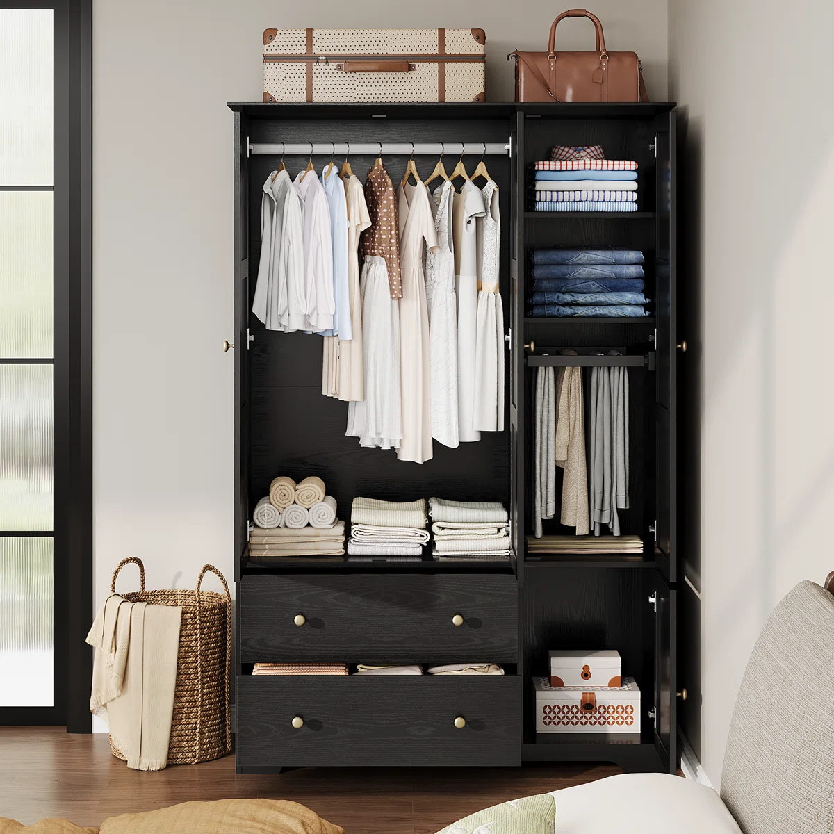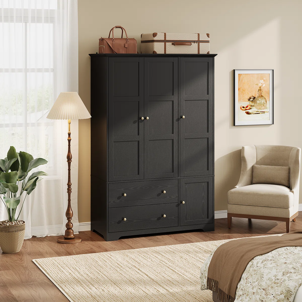 Labonza Lemari Pakaian 3 Pintu Plywood Hitam Serat