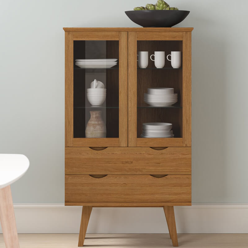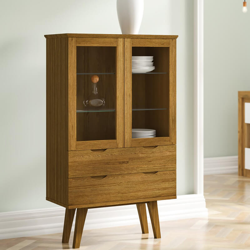 Berkonsep pada desain minimalis 2 pintu dengan memiliki kaki ramping meruncing khas retro style menjadikannya semakin trndi dan kekinian. Serta dilengkapi dengan 2 laci penyimpanan untuk memberikan space lebih pada bagian barang yang ingin ditampilkan. Dan tampilannya disempurnakan dengan sentuhan wood finishing warna natural sehingga serat kayu jati masih terlihat mempesona.