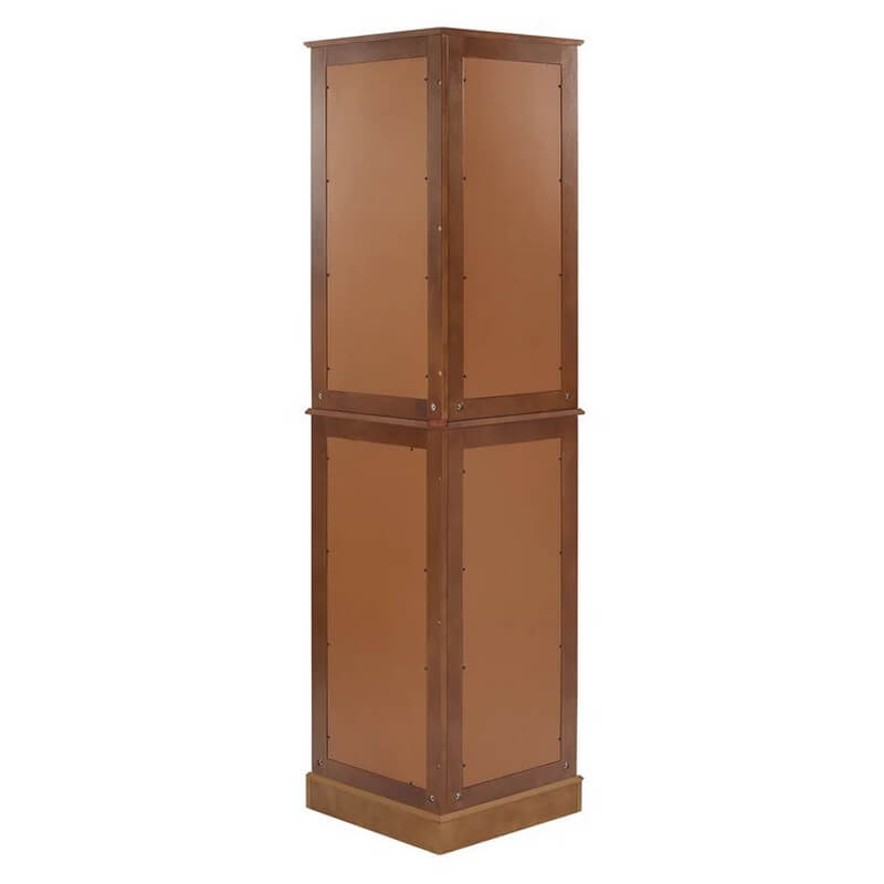 Rangka diolah menggunakan bahan kayu jati pilihan sehingga menjadikan kontruksinya kokoh. Dan ditambahkan bahan kaca agar koleksi berang antik anda terexpos sebih sempurna. Sehingga tamu yang melihatnya akan kagum dengan koleksi-koleksi anda. Untuk desain sendiri, mengusung konsep minimalis model terbaru yang pada bagian belakangnya membentuk segi tiga. Agar bisa ditaruh pada bagian sudut di ruang tamu rumah anda. Serta lemari pajangan sudut dari kayu jati ini dilapisi dengan wood finishing warna walnut agar membuatnya semakin cantik dan menawan.