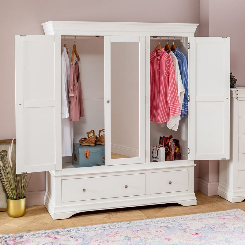 Produk ini selain menjadi tempat untuk menyimpan pakaian, bisa juga untuk memperindah interior ruang kamar anda. Karena produk ini berkonsep minimalis model 3 pintu terbaru dengan tambahan 2 laci penyimpanan serta 1 pintunya dilenkapi dengan kaca cermin. Tentunya tampilannya juga dipercantik dengan sentuhan duco finishing warna putih tebal, halus dan juga rapi.