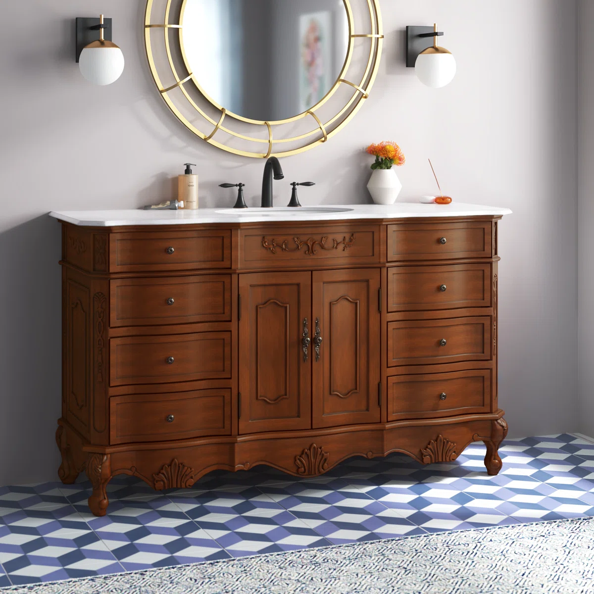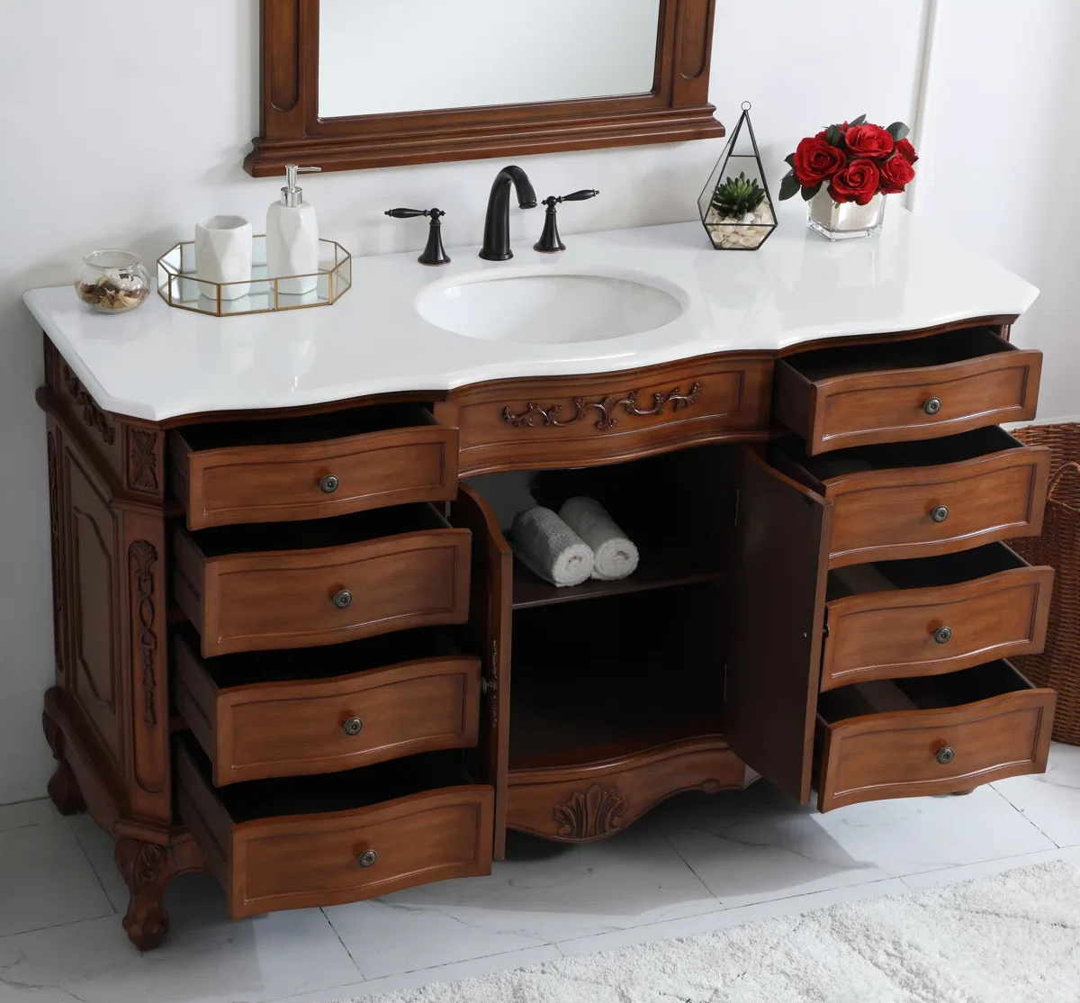 LOREN Wastafel Cabinet Laci Model Klasik Kayu Jati