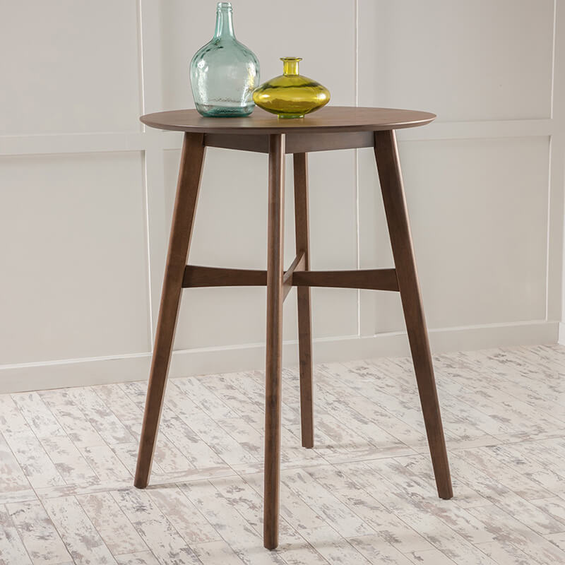 Pilihan terbaik dalam melengkapi kebutuhan furniture pada cafe, coffee shop atau mini bar. Karena desain dari produk ini sangat keren sekali dengan konsep minimalis gaya terbaru yang memiliki top bundar. Tentunya meja bar ini menggunakan bahan kayu jati pilihan yang berlapis wood finishing warna walnut brown. Sehingga menjadikannya semakin elegant dan pantas untuk mempercantik dekorasi tempat usaha anda.