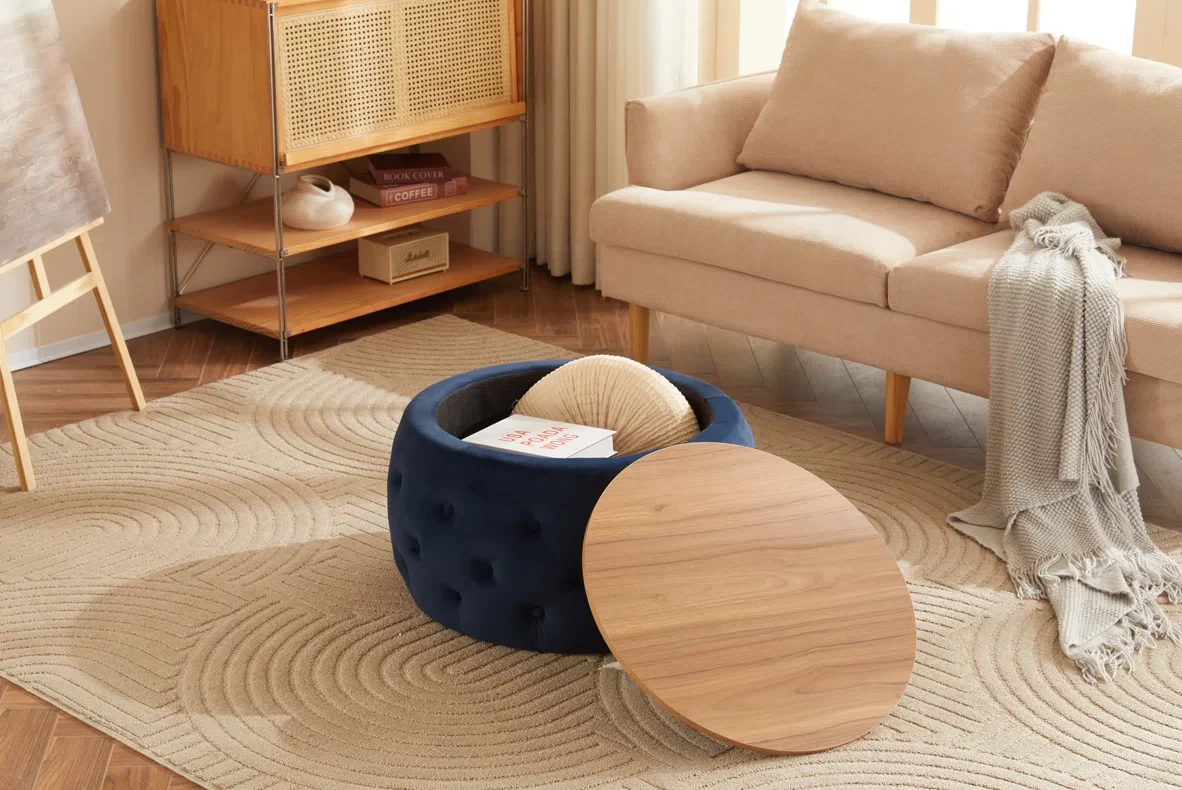 Meja Tamu Bundar Jok Kain Beludru Minimalis Terbaru