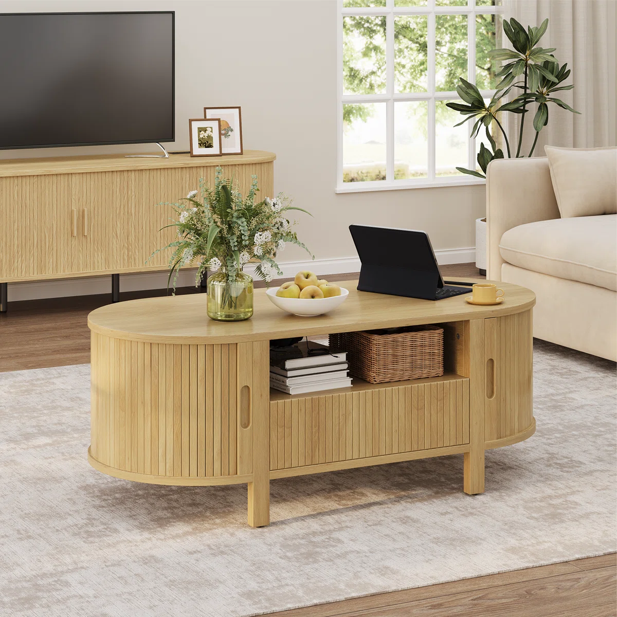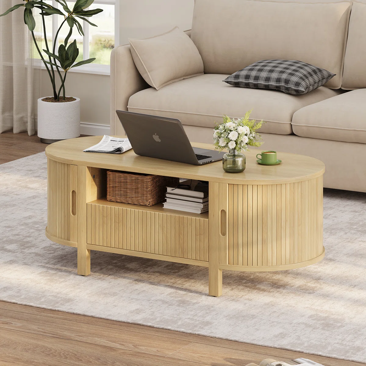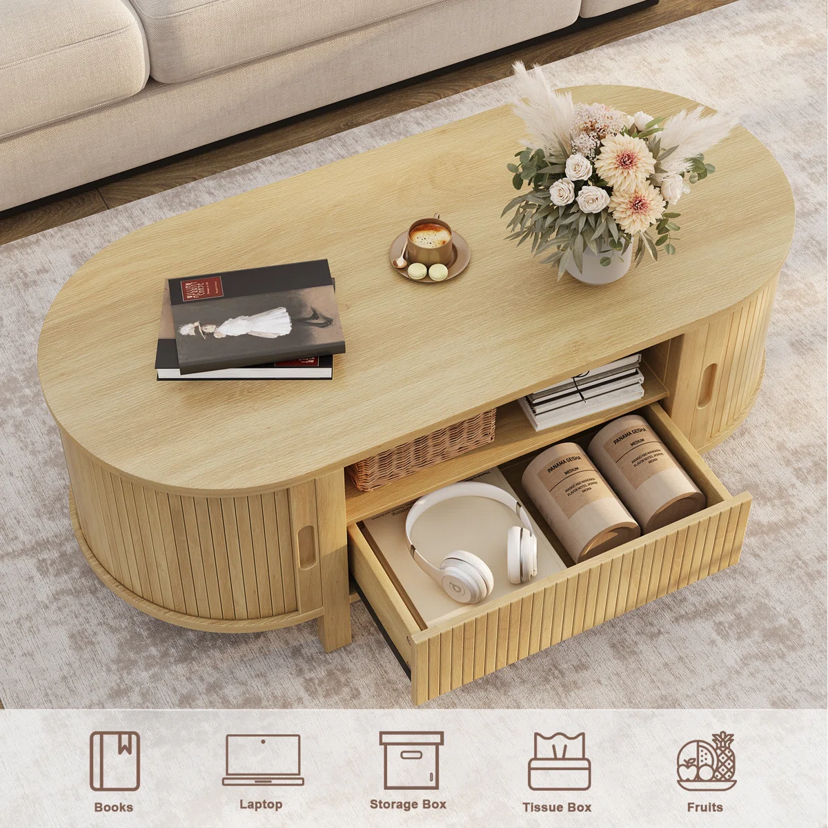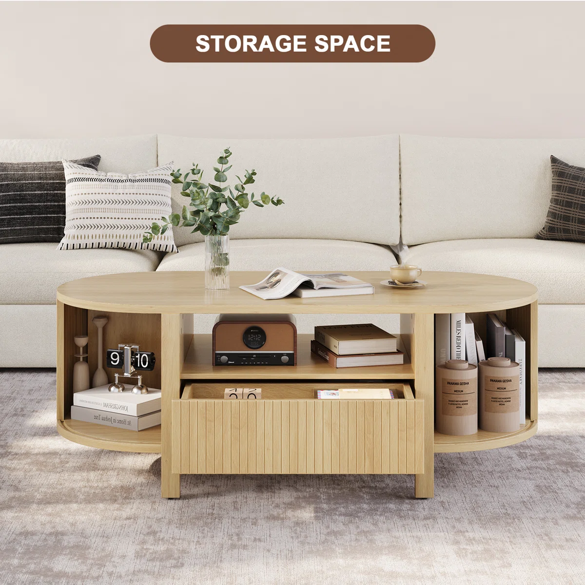ini akan merubah ruang tamu Anda dengan sentuhan stylish namun praktis. Lihatlah meja tamu ini yang tidak hanya terlihat menawan tetapi juga dilengkapi dengan penyimpanan multifungsi yang praktis, sempurna untuk menyimpan majalah, remote, dan barang-barang penting lainnya. Finishingnya juga memberikan nuansa hangat, memperindah desain modern nya, dan membuat ruang Anda terasa lebih ramah. Meja tamu ini akan menjadi pusat perhatian yang menawan di ruang tamu Anda.