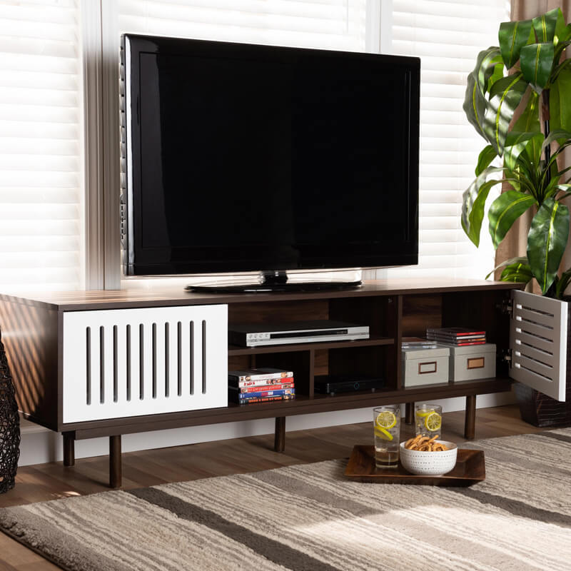 Sangat tepat sekali untuk menjadi pilihan dalam memilih furniture untuk ruang keluarga. Yang dimana berfungsi sebagi tempat TV atau LCD supaya anda lebih nyaman dalam menonton film atau sinetron favorit anda dirumah. Bergaya minimalis model terbaru dengan sentuhan kaki ramping reto modern yang sedang trend saat ini dari bahan kayu jati kombinasi mahoni. Dan dilengkapi dengan fitur tempat penyimpanan berpintu di kanan dan kiri. Serta rak pada bagian tengah untuk tempat DVD player atau lainnya yang terdapat lubang untuk akses kabel. Dan untuk mempercantik tampilannya Meja ini dilapisi wood finishing warna walnut brown dan duco finishing warna putih.