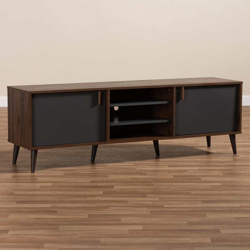 Desain minimalis simpel dengan 2 laci penyimpanan serta memiliki kaki ramping khas retro style menjadiaknya semakin modern dan trendi. Terbuat dari bahan utama kayu jati pilihan berlapis wood finsihing warna walnut brown. Namun pada bagian daun laci penyimpanan terbuat dari bahan kayu mahoni oven dengan lapisan duco finishing warna grey (abu-abu). Sehingga menjadiakan tampilannya semakin modis, dan pastinya sangat cocok sekali untuk pelengkap furniture rumah gaya masa kini.