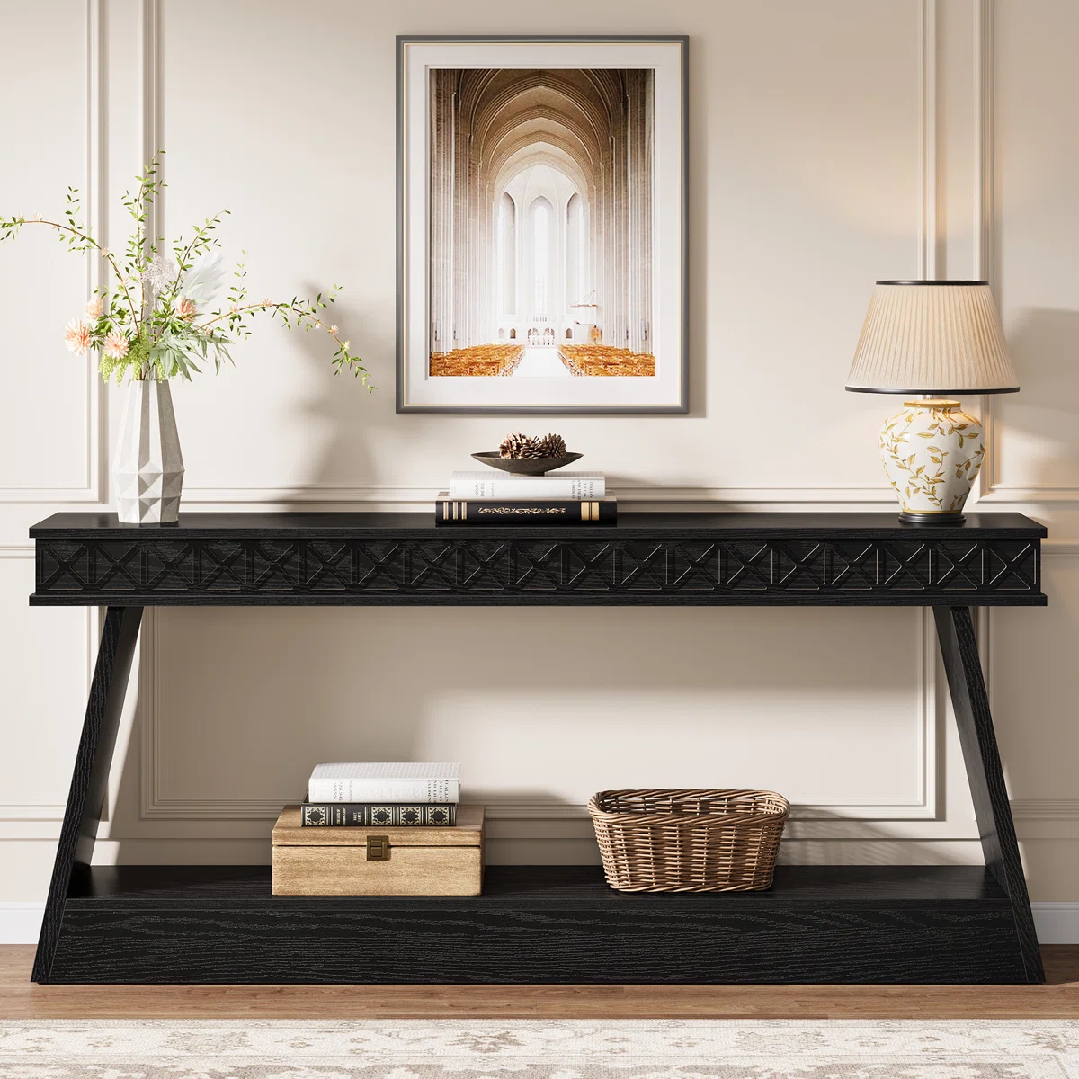 Hadirkan pesona kemewahan dalam sudut ruang tamu Anda karena produk ini sangat cocok untuk menjadi salah satu pilihan bagi Anda yang sedang mencari furniture Meja Konsol. Karena desain dari produk Meja Konsol ini cukup elegant dengan mengusung tema minimalis bergaya modern yang sangat modis dan kekinian. Serta memiliki visual yang menawan berkat lapisan laminasi tacosheet warna hitam serat kayu sehingga produk ini menambah kesan mewah juga elegant. Dan pastinya, bahan baku utama dari produk Meja Konsol ini diolah dengan menggunakan Plywood dan Tacosheet Motif Kayu Premium sehingga terjamin akan mutu, awet dan kualitas nya.