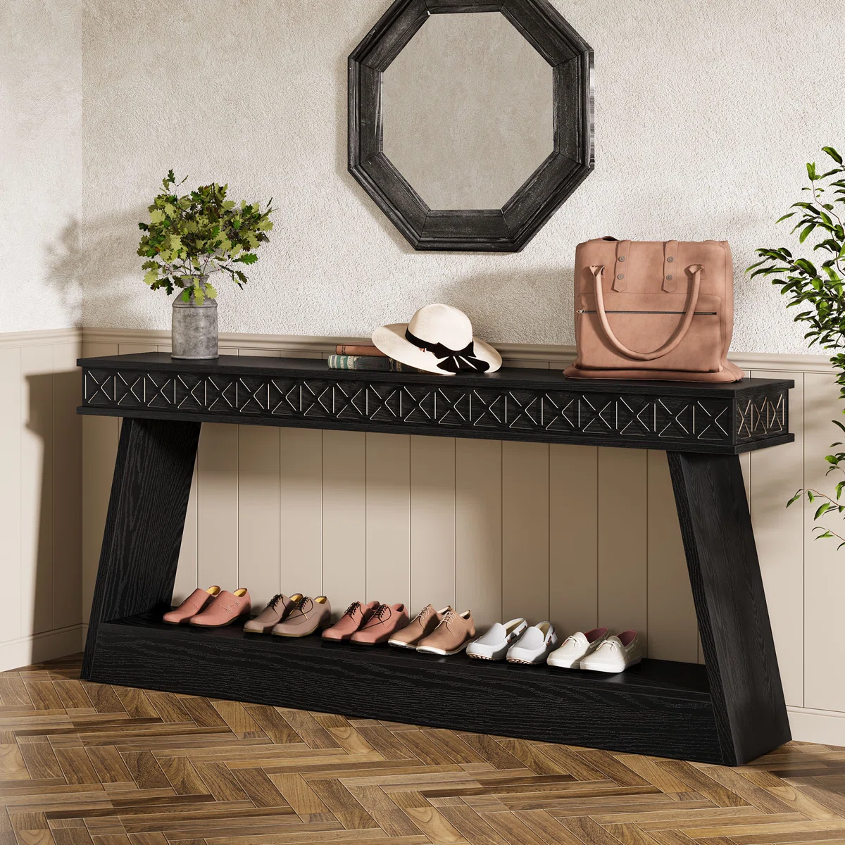 JOYAN Meja Konsol Rangka Besi Kombinasi Kayu Jati