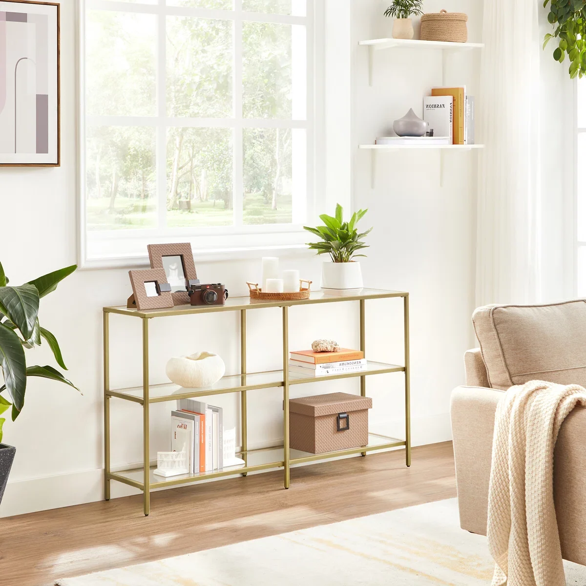ODINE Meja Konsol Besi Holo Mewah Minimalis Top Glass