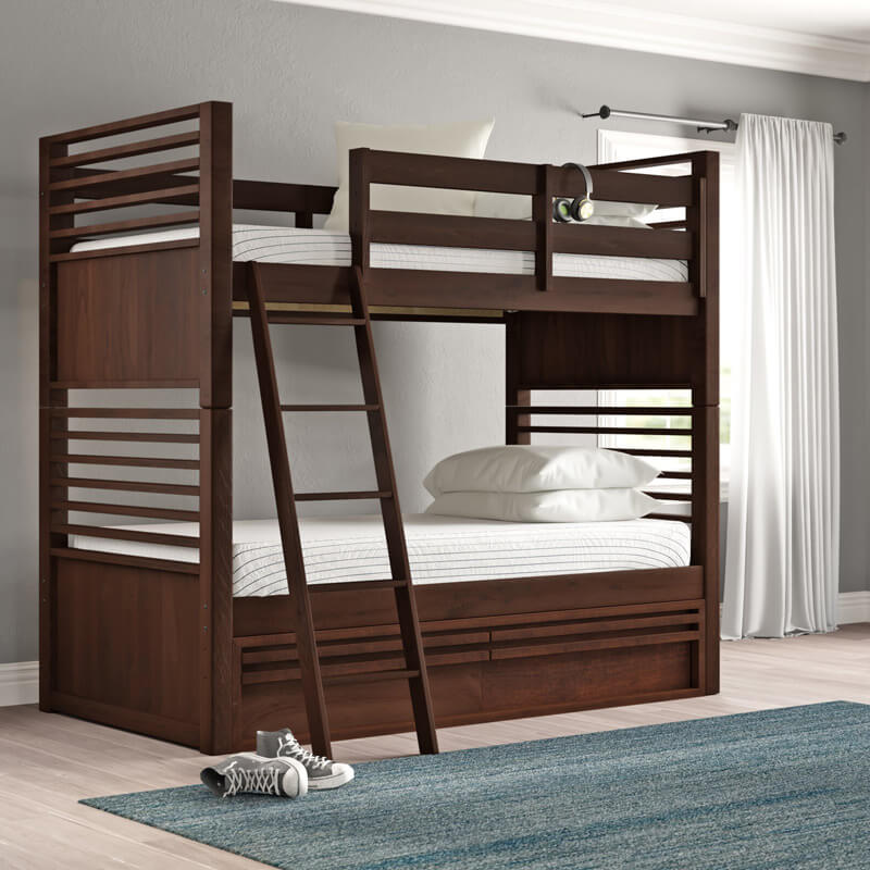Sangat tepat sekali untuk melengkapi kebutuhan ranjang tidur di kamar anak-anak anda. Hadir dengan konsep minimalis gaya terbaru yang memiliki 2 laci penyimpanan untuk bedcover, selimut ganti, dll. Serta tampilannya juga sangat indah dengan lapisan wood finishing warna dark walnut brown semi gloss yang dengan kehadirannya akan dapat menambah warna tersendiri kamarnya. Tentu saja ranjang satu ini terbuat dari bahan kayu jati pilihan, sehinga terjamin akan mutu dari produk satu ini.