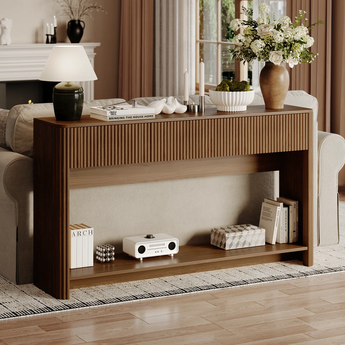EZRA Meja Konsol Laci Desain Minimalis Kayu Jati