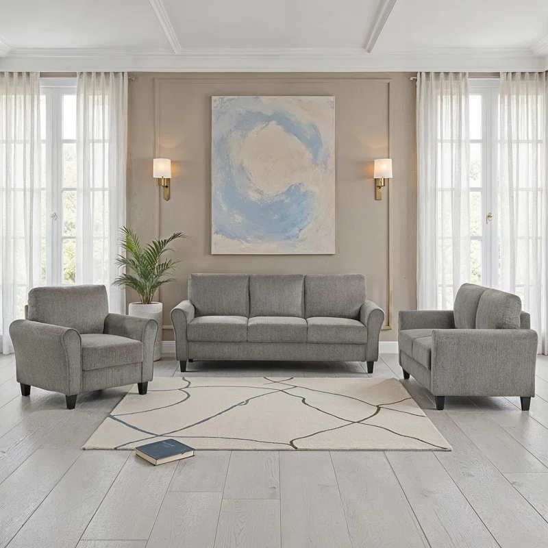 Hadirkan kenyamanan mewah dan tekstur yang menarik di rumah Anda dengan koleksi tempat duduk tiga bagian, yang terdiri dari sofa 3 dudukan, single sofai, dan sofa 2 dudukan. Set Sofa ini sepenuhnya dilapisi dengan kain pelapis Fabric yang lembut dan bertekstur, memberikan sentuhan hangat dan ramah keluarga pada ruang tamu Anda. Desainnya menampilkan profil yang kokoh dan ramping, serta dipertegas oleh kaki yang terlihat kokoh dengan finishing kayu warna hitam, menawarkan gaya Transisional serbaguna yang cocok dengan berbagai dekorasi. Dibangun di atas rangka kayu solid dan kayu lapis yang kokoh, tempat duduk ini menggunakan bantalan busa kepadatan tinggi di atas pegas saku yang elastis untuk memberikan dukungan yang luar biasa dan tahan lama serta tempat duduk yang nyaman dan mempertahankan bentuknya.