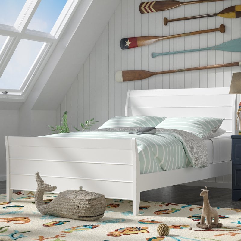 Tempat tidur ini didesain dengan model yang simpel dan nyaman digunakan. Bagian headboard dan footboard memiliki bentuk yang sedikit melengkung dan terdapat sedikit hiasan garis garis.