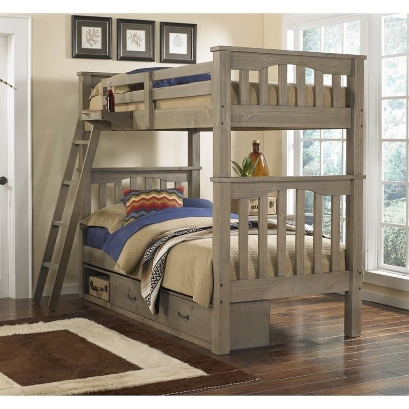 Tempat tidur tingkat dengan sentuhan warna rustic ini menggambarkan kesan yang alami dan sederhana. Kamar tidur nantinya akan terasa hangat dan tetap dinamis. Tempat tidur telah di lengkapi laci sorong yang multifungsi bisa Anda jadikan sebagai penyimpanan mainan anak, selimut atau juga bisa sebagai tempat tidur tambahan.