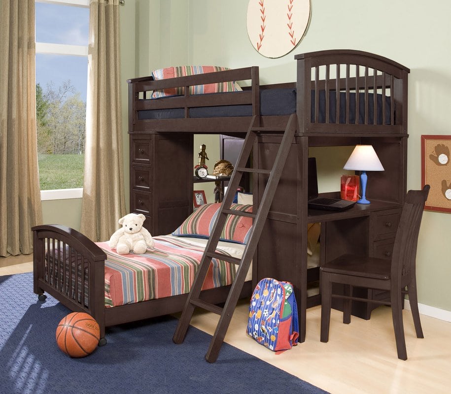 Jika Anda mempunyai kamar tidur yang tidak terlalu luas desain ini sangat cocok untuk Anda, karena ada meja belajar yang sudah menyatu dengan tempat tidur tingkat dan juga ada ruang kosong untuk menempatkan tempat tidur utama.