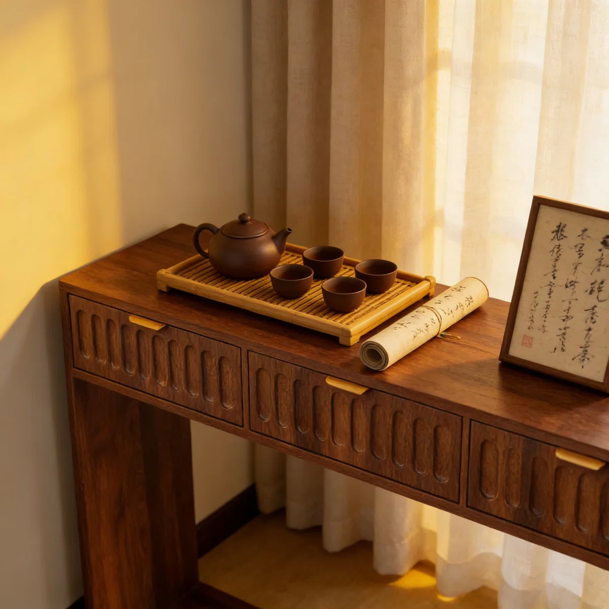ZENAN Meja Konsul Desain Pintu Jari Jari Kayu Jati Jepara